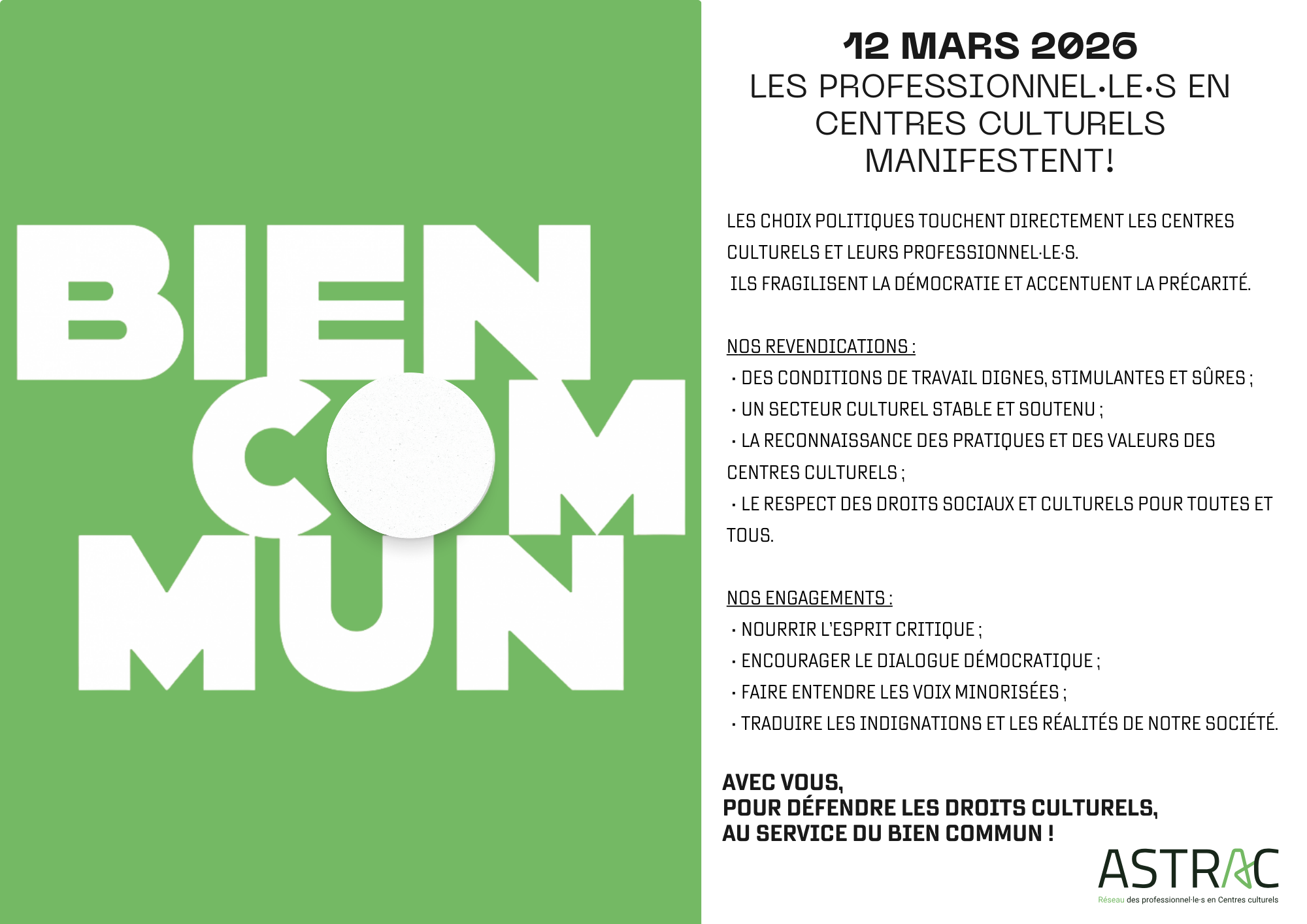Nous invitons les professionnel·le·s en Centres culturels à rejoindre le « Bloc Culture » et à relayer l’appel au sein de leurs équipes.