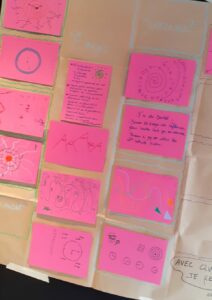 La première partie de l’atelier était consacrée à un échange sur les réalités du métier de chargé·e de com’.  Lors de la deuxième partie d’atelier, le groupe a abordé la question « Et si les réseaux sociaux n’existaient plus ? ». Chaque groupe devait répondre à une problématique spécifique en imaginant des solutions originales à mettre en place au sein de son Centre culturel.