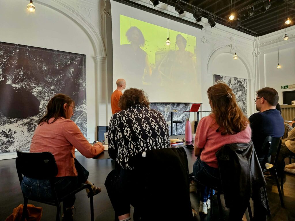I. Les duos des AP – En duo et dans des mises en situation diverses et parfois incongrues, chacun·e a parlé de son travail en Centre culturel autour des arts plastiques. Face par exemple à un habitant du territoire peintre indépendant ou à une conservatrice de musée, les participant·e·s ont partagé leurs vécus et leurs expériences et se sont outillé·e·s pour mieux parler et défendre leur travail.